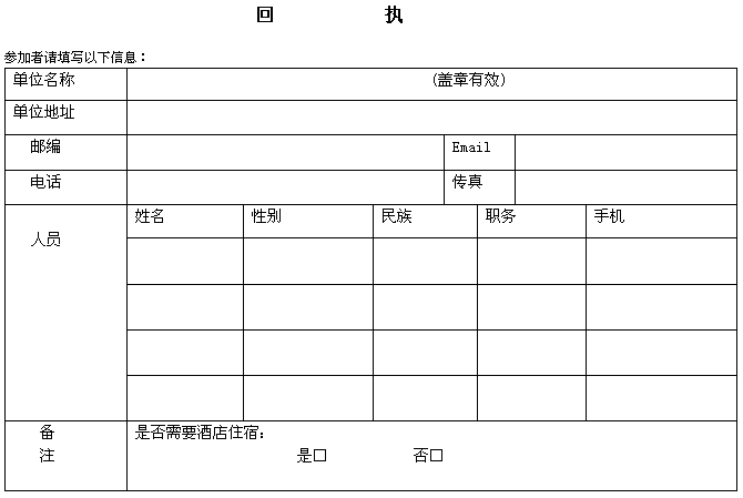 注:請于9月19日前將回執(可打印、復制)傳真、郵寄或發電子郵件到以下地址: