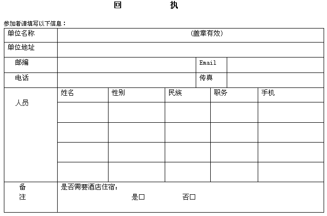 注:請于9月26日前將回執(可打印、復制)傳真、郵寄或發電子郵件到以下地址: