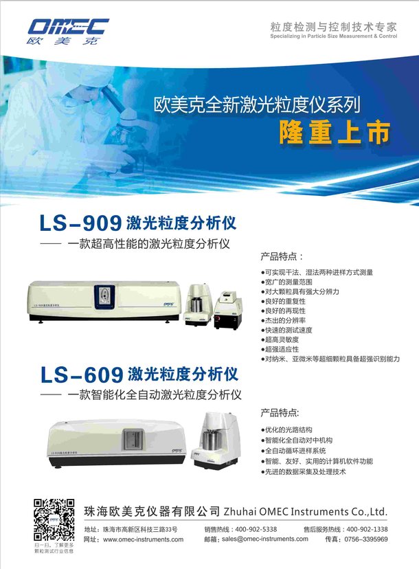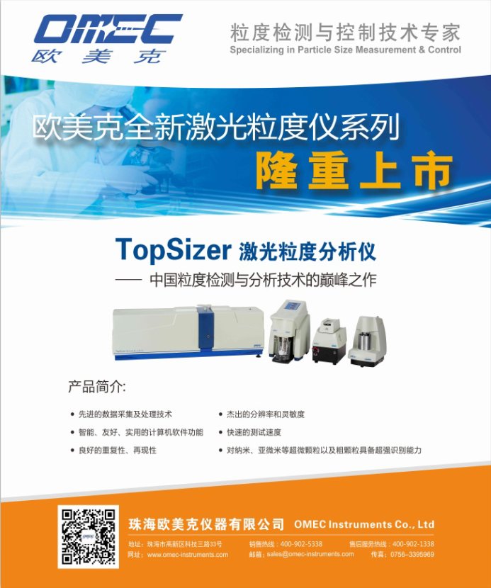 珠海歐美克儀器有限公司為知名跨國企業(yè)英國思百吉集團(tuán)成員。主要產(chǎn)品:激光粒度分析儀、電阻法顆粒計(jì)數(shù)器、顆粒圖像分析處理系統(tǒng)等三大系列,服務(wù)用戶超過6000家,涉及粉體生產(chǎn)企業(yè)、高等院校、科研院所等不同領(lǐng)域,并出口至美、英、德、日等三十多個國家和地區(qū)。歐美克及其科研人員參加了水泥、磨料、碳粉等多個行業(yè)粒度測量標(biāo)準(zhǔn)的制定,同時也是激光粒度儀2016版國標(biāo)的起草單位之一。
