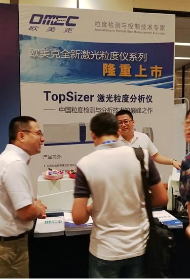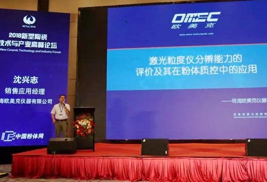 作為粒度檢測與控制技術專家--珠海歐美克儀器有限公司應邀參會并在展覽區域現場展示TopSizer激光粒度分析儀。會上,歐美克銷售應用經理沈興志作了《激光粒度儀分辨能力的評價及其在粉體質控中的應用》的報告。沈經理在報告中指出,應在評估激光粒度儀的分辨能力基礎上建立粉體粒徑的質控體系。