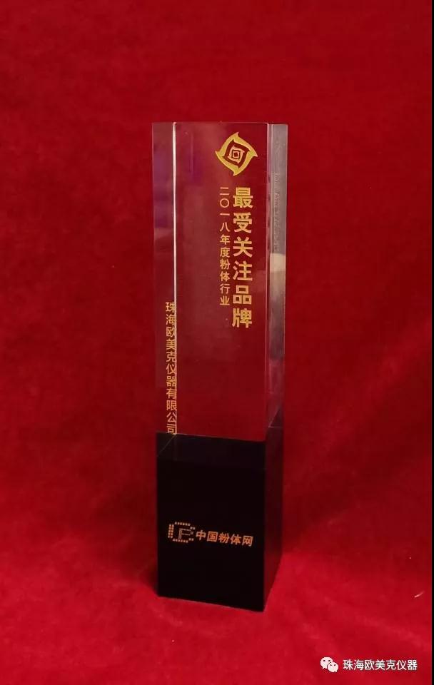 由中國粉體網、北京粉體技術協會聯合主辦的“2018粉體行業年度獎項評選”活動,珠海歐美克儀器有限公司被中國粉體網評選為“最受關注品牌”。珠海歐美克儀器有限公司生產的TOPSIZER激光粒度分析儀被中國粉體網授予“最受關注產品獎”。