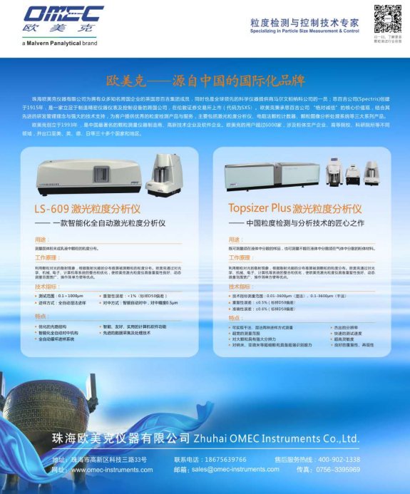 珠海歐美克儀器有限公司為英國思百吉集團成員,同時也是全球領先的科學儀器提供商馬爾文帕納科公司的一員;歐美克是中國著名的顆粒測量儀器制造商、高新技術企業及軟件企業,為客戶提供優秀的粒度檢測產品與服務,主要包括激光粒度分析儀、電阻法顆粒計數器、顆粒圖像分析處理系統等三大系列產品。歐美克的用戶超過6000家,涉及粉體生產企業、高等院校、科研院所等不同領域,并出口至美、英、德、日等三十多個國家和地區。