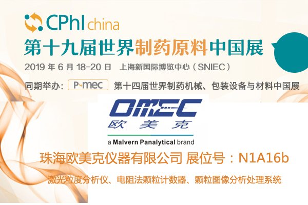 第十九屆世界制藥原料中國展暨第十四屆世界制藥機械、包裝設備與材料中國展(CPhI & P-MEC China 2019)將于2019年6月18~20日再度登陸上海浦東新國際博覽中心。珠海歐美克儀器有限公司與您相約這個制藥行業貿易交流盛會。