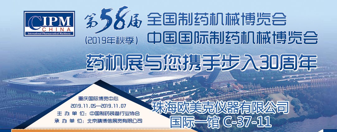 第58屆(2019秋季)全國制藥機械博覽會將于11月5日—7日在重慶國際博覽中心舉行。珠海歐美克儀器有限公司作為粒度檢測與測控技術專家應邀參展,屆時歐美克多款儀器產品亮相博覽會。