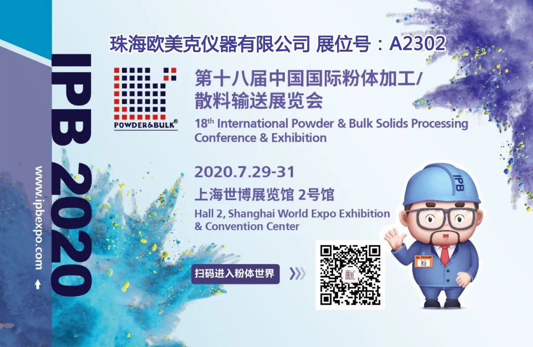引領(lǐng)粉體行業(yè)智能綠色安全發(fā)展,IPB 2020第十八屆中國(guó)國(guó)際粉體加工/散料輸送展覽會(huì)定于2020年7月29-31日在上海世博展覽館舉行。作為粒度檢測(cè)與控制技術(shù)專家,珠海歐美克儀器有限公司應(yīng)邀參加,展位號(hào):A2302,歡迎蒞臨交流洽談!