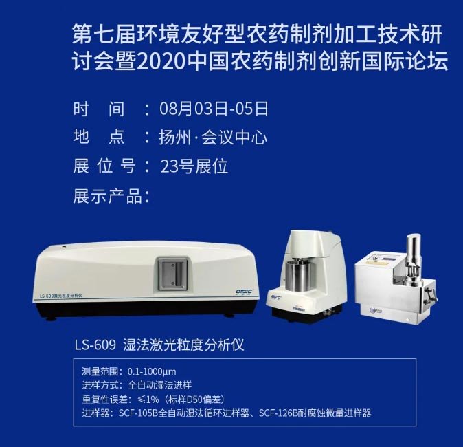 第七屆環境友好型農藥制劑加工技術研討會暨2020年中國農藥制劑創新國際論壇定于2020年8月4~6日在江蘇揚州會議中心召開,珠海歐美克儀器有限公司應邀參加,并現場展示LS-609型濕法激光粒度分析儀。