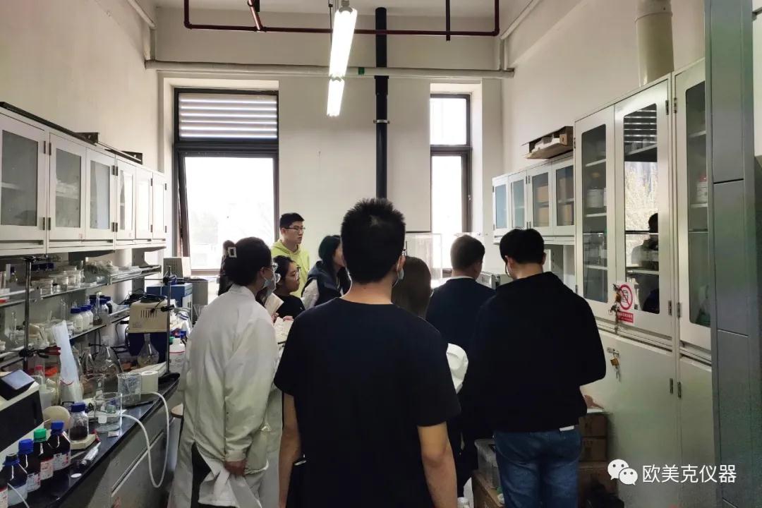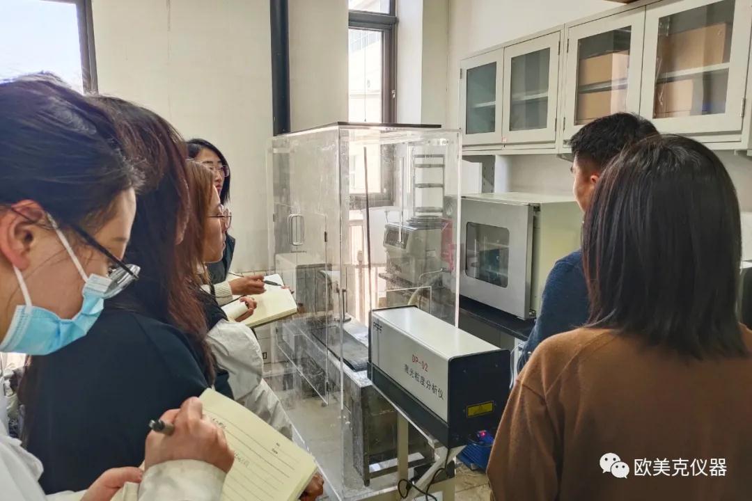 儀式現場,歐美克儀器服務工程師于曉輝也專門為實驗室的同學們進行專業詳細的儀器培訓。現場同學們的學習熱情高漲,于工也針對同學們關心的這兩款儀器的原理特性和操作使用一一做出解答,并指導他們動手進行DP-02噴霧激光粒度分析儀的對中調試及噴霧霧滴普的測試。
