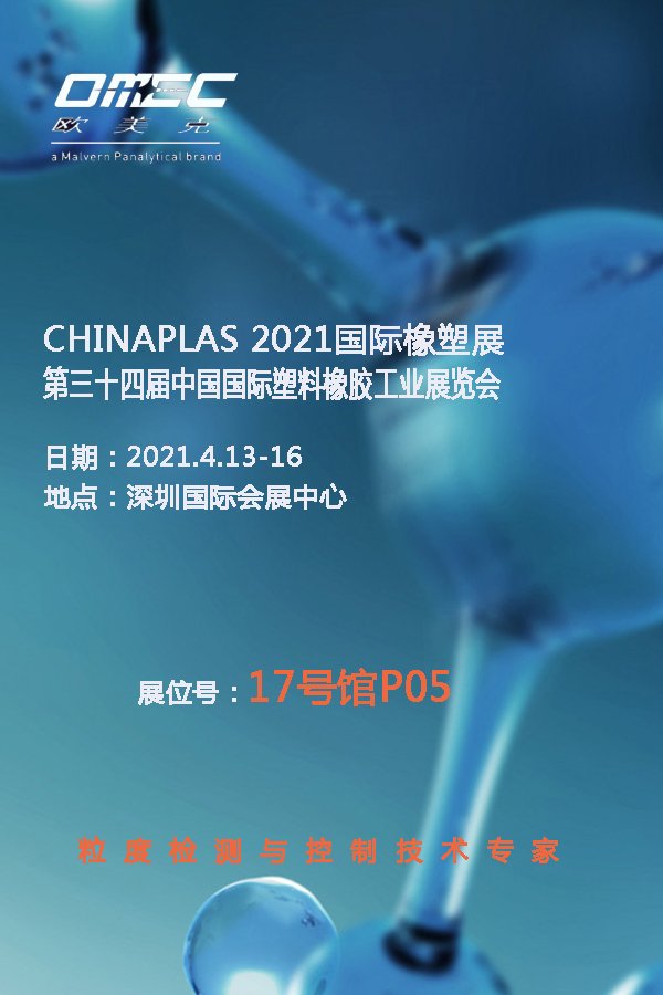 CHINAPLAS 2021國際橡塑展將于4月13日至16日在深圳國際會展中心舉行。屆時將匯聚超過3,600家中外展商共同參與。珠海歐美克儀器有限公司攜激光粒度分析儀亮相,與您共塑精彩未來。