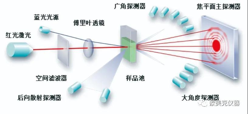 ▲ 激光粒度儀光學(xué)原理簡(jiǎn)圖(GB/T 19077-2016)