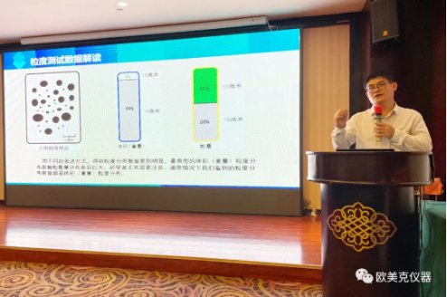 作為該會議的主要協辦方之一,珠海歐美克儀器有限公司(以下簡稱“歐美克儀器”)派出了強大的技術團隊攜NS-90和LS-609兩款型號三臺儀器盛裝出席,為與會人員帶來高水平的粒度檢測與分析技術理論及實操培訓。