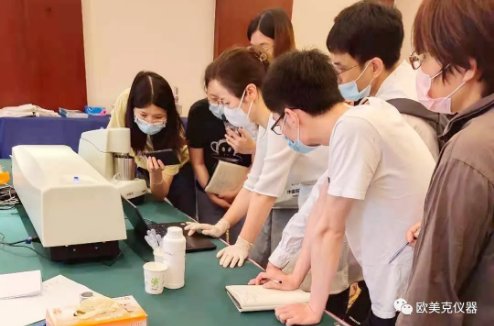 從儀器操作到報告解讀,歐美克儀器的老師們嚴謹認真又不失幽默風趣的細致教學讓每一位學員都獲益匪淺。由于儀器高度智能化和自動化,學員們在極短的時間內便可以獨自規范使用儀器進行實驗操作,并依次進行了實操專業考試。