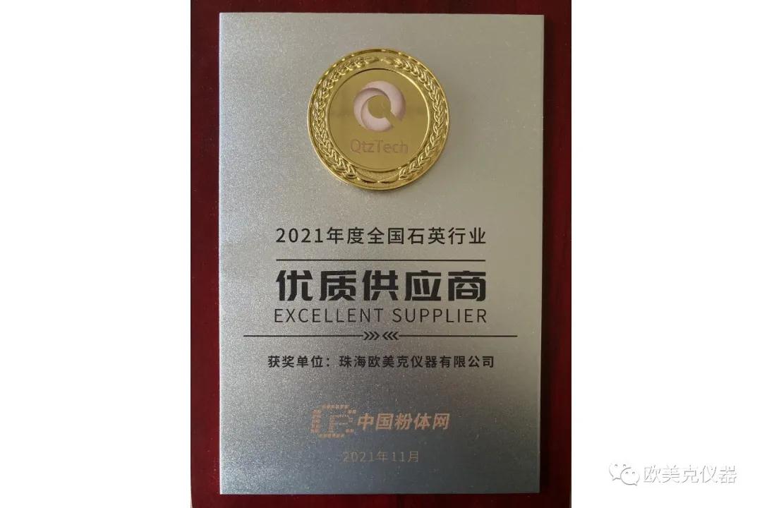 ▲ 歐美克儀器榮獲“2021年度全國(guó)石英行業(yè)優(yōu)質(zhì)供應(yīng)商”稱號(hào)