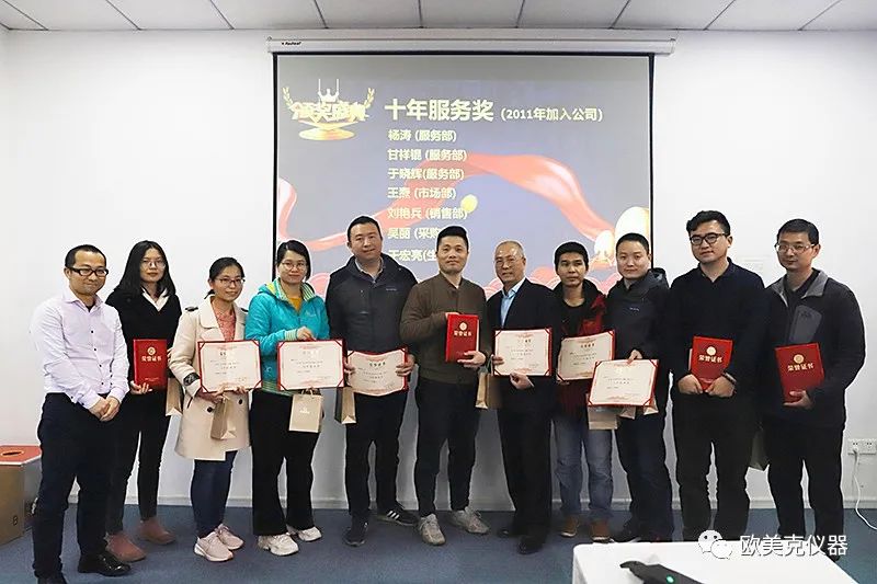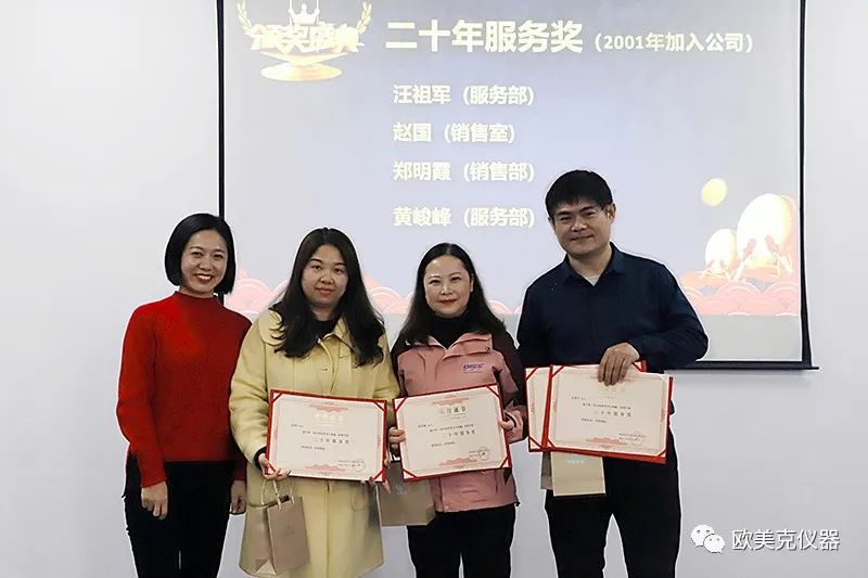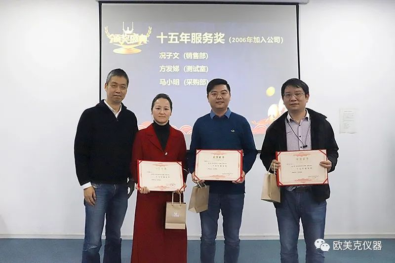 當然,長期服務的資深員工也是歐美克的一筆巨大財富。他們堅守崗位,與公司風雨同舟,砥礪前行。年會現場對服務公司5年、10年、15年甚至20年之久的老員工頒發了長期服務獎,感恩他們多年來堅持不懈的努力和一如既往的信任。
