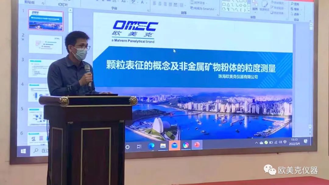 近日,由國家建筑材料工業技術情報研究所舉辦的“第四期非金屬礦粉體加工及應用技術培訓”,在中國“碳酸鈣之都”廣西賀州隆重召開。作為在非金屬礦粉體粒度測試領域深耕多年的珠海歐美克儀器有限公司,本次也攜LS-609全自動型激光粒度儀應邀參加了本次會議,并現場作《顆粒表征的概念及非金屬礦物粉體的粒度測量》主題報告分享。