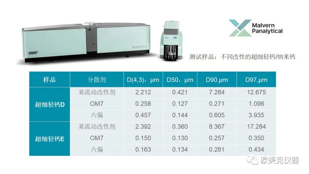 ▲ Topszier激光粒度分析儀檢測納米碳酸鈣的不同方案的測試對比
