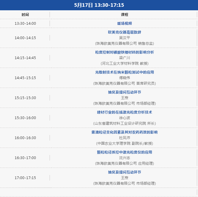 作為中國顆粒學(xué)會及儀器信息網(wǎng)的長期合作伙伴單位,珠海歐美克儀器有限公司旨在保持粒度表征研究應(yīng)用及檢測分析的前沿?zé)狳c和技術(shù)難點的探討,同時促進(jìn)業(yè)內(nèi)同仁的相互交流和粒度表征領(lǐng)域的良性發(fā)展。現(xiàn)定于5月17日13:30至17:15分舉辦學(xué)術(shù)報告專場直播。