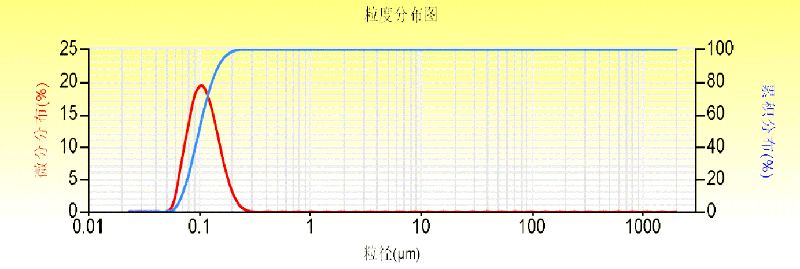 歐美克Topsizer激光粒度分析儀對D50為0.1μm左右的超細隔膜材料氧化鋁的粒度測試粒度分布圖如下圖所示。