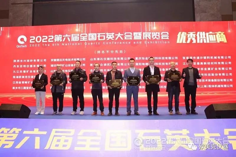 近日,2022第六屆全國石英大會暨展覽會在江蘇省徐州博頓溫德姆酒店圓滿落幕。歐美克再次應(yīng)邀參加本次全國石英大會并榮獲“2022年全國石英行業(yè)優(yōu)秀供應(yīng)商”獎項。