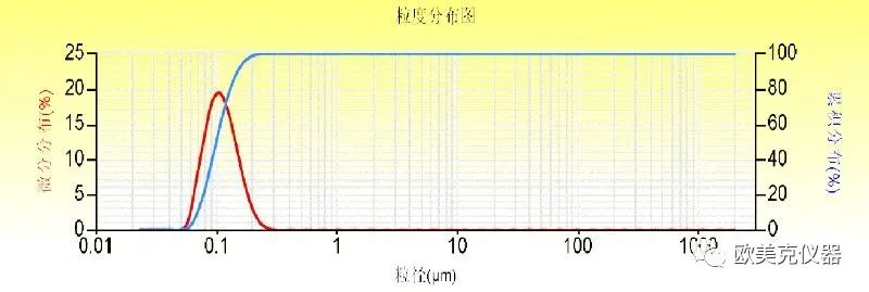 歐美克Topsizer激光粒度分析儀對D50為0.1μm左右的超細隔膜材料氧化鋁的粒度測試粒度分布圖如下圖所示。