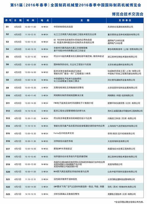 第51屆(2016年春季)全國制藥機(jī)械暨中國國際制藥機(jī)械博覽會啟用了國博中心中央大廳以及南北各7個(gè)展館,展出面積達(dá)180,000平方米,逾900家中外展商及品牌參展,展品涵蓋制劑機(jī)械、原料藥設(shè)備、包裝機(jī)械館、制藥用水設(shè)備、藥用粉碎設(shè)備館、飲片機(jī)械、藥物檢測設(shè)備等。據(jù)預(yù)計(jì)展會高峰期日人流量將達(dá)到5萬人左右。